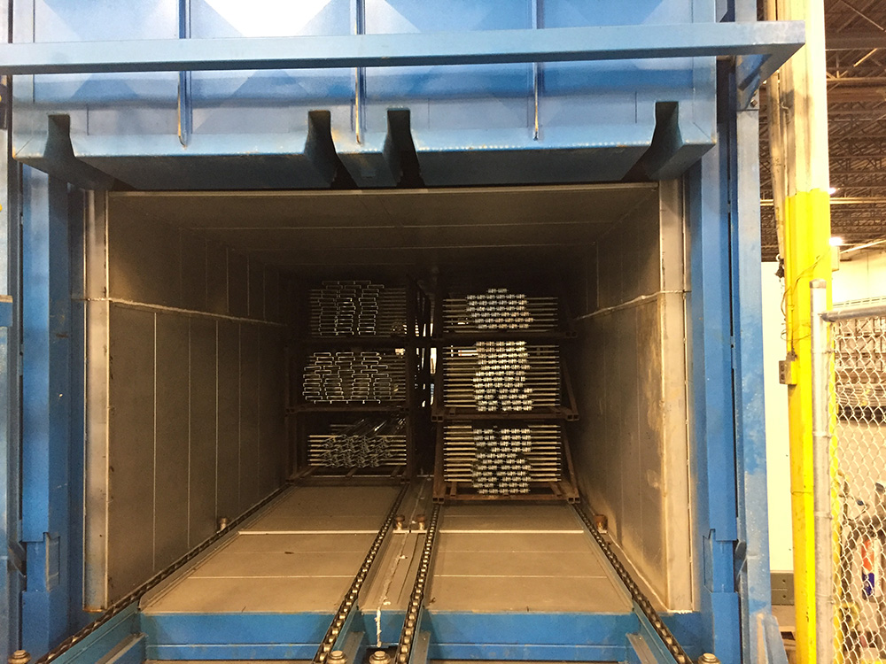 STANDARD AGING OVEN SYSTEM Including: stacker to move profiles into the basket baskets conveyors aging oven automatic basket’ s crane PRODUCTS > PRESS FEEDING LINE > EXTRUSION PRESS > COOLING SYSTEM > HANDLING SYSTEM > STANDARD AGING OVEN SYSTEM > AUTOMATIC AGING OVEN > ALUMINIUM FOUNDRIES